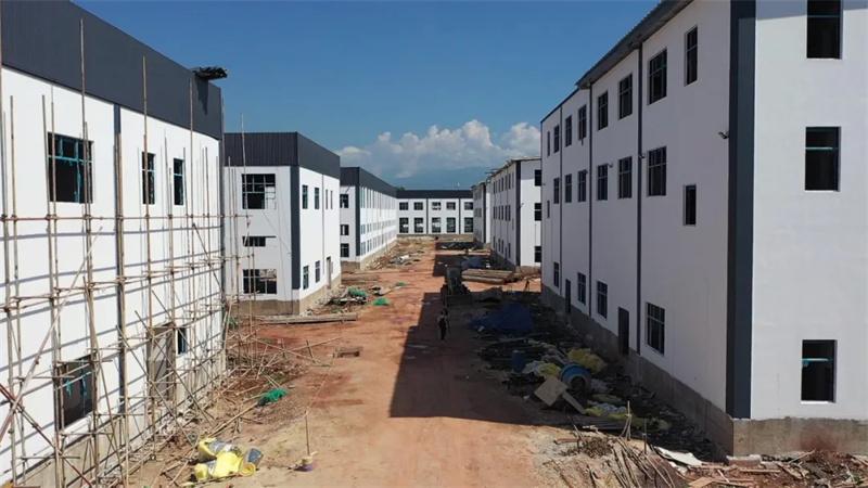 7月29日,盛夏的阳光热辣地洒满巍山坝子。在云南巍山产业园区甸中片区的标准化厂房内,一片热火朝天的生产景象。南京泽朗生物科技有限公司的生产线上,工人们娴熟地将刚复烤出炉的辣木子叶进行装袋,准备送往下一车间加工成高附加值的辣木速溶粉产品。园区内标准化厂房建设如火如荼,7栋崭新的楼房矗立,工人正在紧张地进行内外墙粉刷。